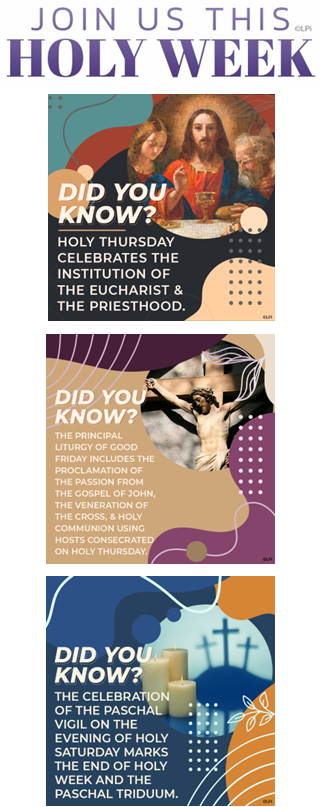 We invite everyone to participate in the liturgies of Holy Week during this sacred time.